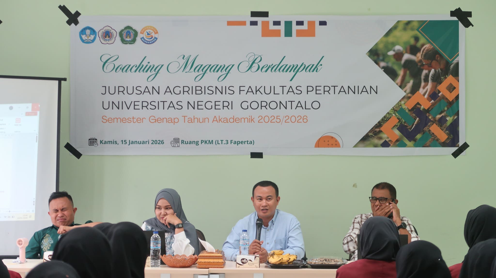 Gorontalo, 15 Januari 2026 – Jurusan Agribisnis Fakultas Pertanian Universitas Negeri Gorontalo (UNG) menyelenggarakan kegiatan coaching bagi mahasiswa Magang 2026 dengan fokus pada coaching sesi 5. Kegiatan ini berlangsung di ruang PKM Fakultas Pertanian UNG dari pukul 09.00 hingga 17.00 WITA, sebagai bagian dari program Magang Berdampak yang mengedepankan pembelajaran berbasis praktik. Mahasiswa diajak memahami secara langsung pengaruh kebijakan perdagangan, mekanisme pasar, serta kondisi ekonomi lokal terhadap keberlangsungan usaha gula aren, sekaligus memperoleh pengalaman nyata melalui observasi dan interaksi dengan pelaku usaha.